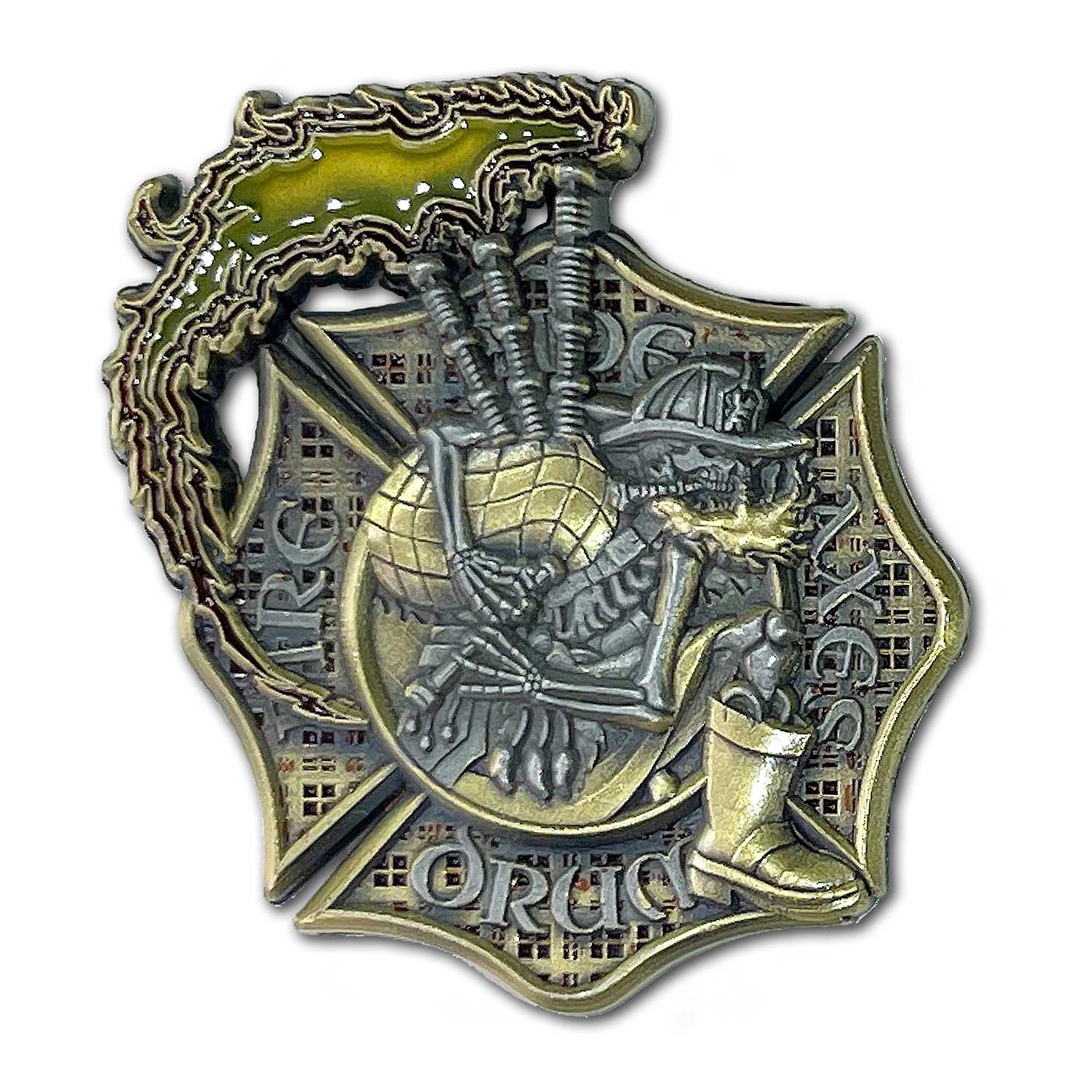 This Pipe And Drum Scottish Firefighter Challenge Coin was designed specifically to honor the men and women with Scottish roots and their careers and way of life as firefighters. The Pipe And Drum Scottish Firefighter Challenge Coin displays the fiery bagpipes with Scottish Flag on the helmet, the colors of Scotland and a kilt with its vibrant tapestry of color. The words Pipe and Drum also allude to the Scottish traditions from Inverness to Dundee, Edinburgh to Glasgow and all towns, villages and cities that make up the great country of Scotland.