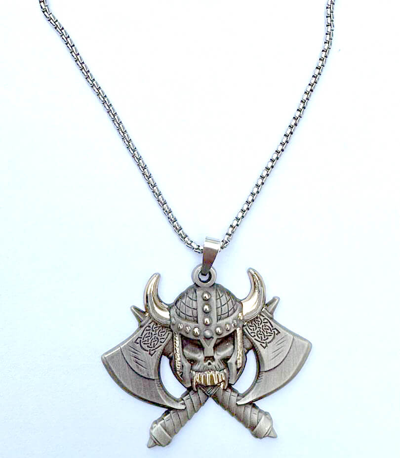 Viking Skull and Double Celtic Hatchets Gold and Sterling Silver Necklace Jewelry with Chain